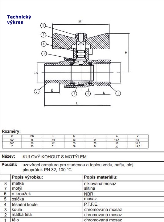 Kulový kohout s motýlem 3/4" MF plnoprůtočný PN 30skladem142,00 Kč/ ks117,36 Kč bez DPH